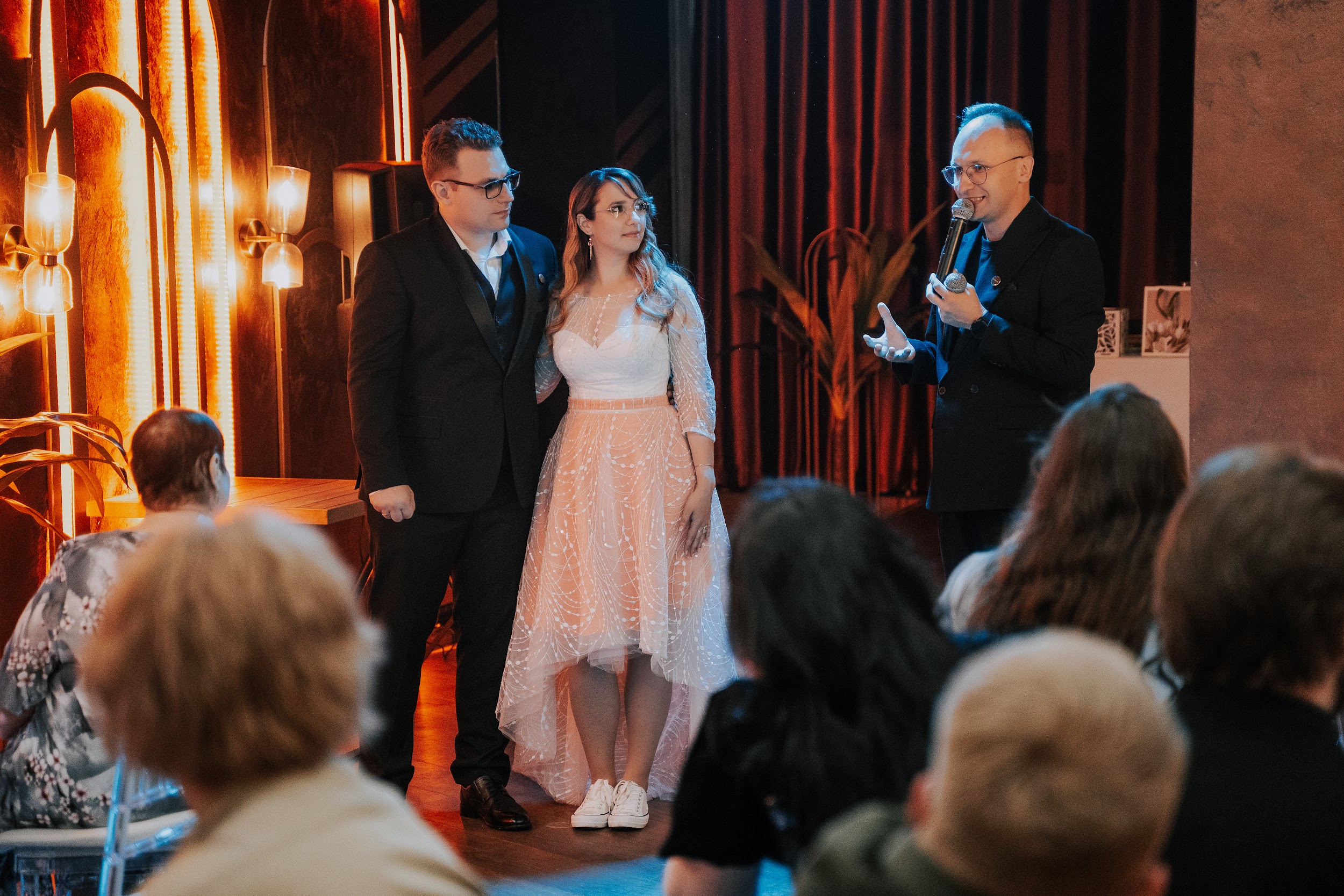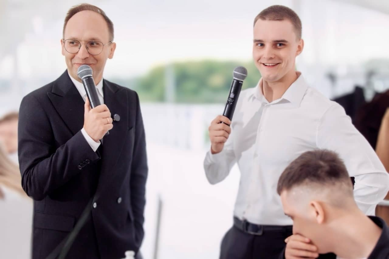 Свадебная программа обсуждается с вами и составляется, исходя из пожеланий молодоженов, а также предпочтений ваших гостей. Чаще всего, в нее входит общение и знакомство с гостями, разговорные интерактивы, поздравления, разнообразный развлекательный контент, начиная от интеллектуальных, заканчивая танцевальными активностями. Я не ставлю гостей в неловкое положение и делаю программу интересной абсолютно для каждого поколения, как для ваших друзей, так и для старшего поколения.